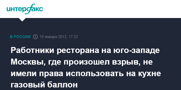 Работники ресторана на юго-западе Москвы, где произошел взрыв, не имели права использовать на кухне газовый баллон