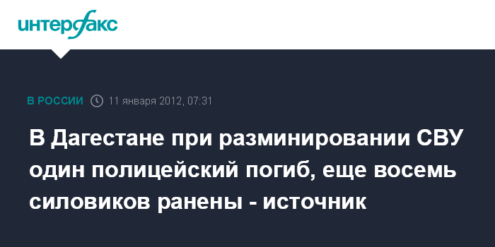 В Дагестане при разминировании СВУ один полицейский погиб, еще восемь силовиков ранены - источник