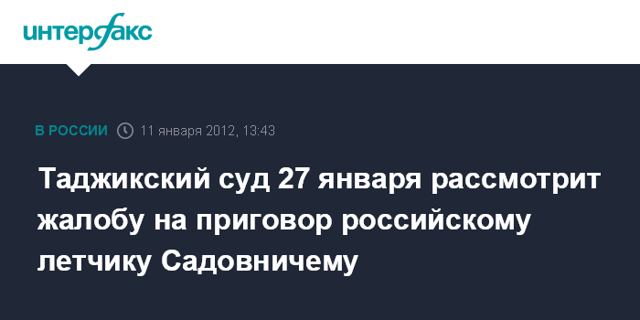 Таджикский суд 27 января рассмотрит жалобу на приговор российскому летчику Садовничему