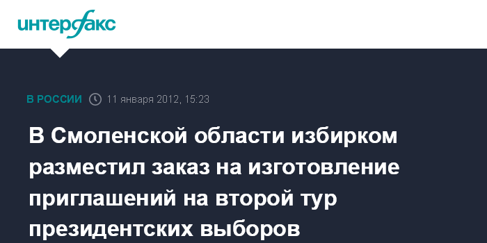 В Смоленской области избирком разместил заказ на изготовление приглашений на второй тур президентских выборов