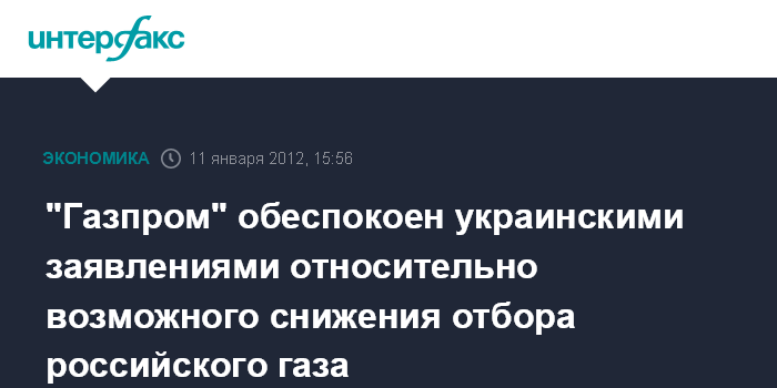 Горки. 11 января. INTERFAX.RU - "Газпром" обеспокоен односторонними заявлениями украинских партнеров относительно снижения количества отбора поставляемого газа.