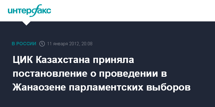 Астана. 11 января. INTERFAX.RU - Центральная избирательная комиссия Казахстана в среду отменила свое постановление от 6 января о непроведении парламентских выборов в городе Жанаозене Мангистауской области.