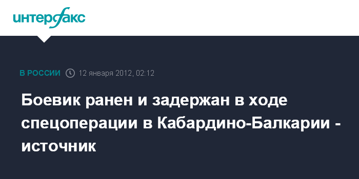 Ростов-на-Дону. 12 января. ИНТЕРФАКС - Боевик, оказавший сопротивление сотрудникам правоохранительных органов, получил ранение и задержан в Баксанском районе Кабардино-Балкарии, сообщили агентству "Интерфакс-Юг" в правоохранительных органах республики.