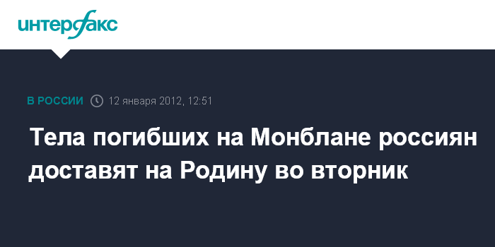 Тела погибших на Монблане россиян доставят на Родину во вторник