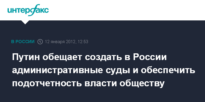 Путин обещает создать в России административные суды и обеспечить подотчетность власти обществу