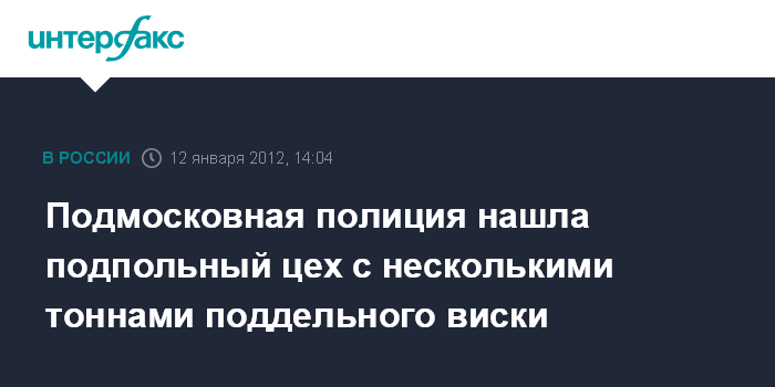 Москва. 12 января. INTERFAX.RU - Подпольный цех по производству и фасовке поддельного виски обнаружен в Каширском районе Подмосковья, сообщили в четверг "Интерфаксу" в пресс-службе ГУ МВД по Московской области.