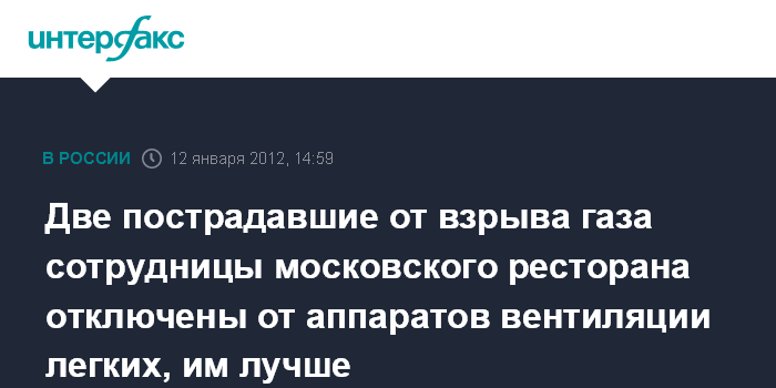 "В четверг две сотрудницы ресторана, пострадавшие в результате взрыва, в возрасте 21 и 27 лет, были отключены от аппаратов искусственной вентиляции легких. Несмотря на то, что их состояние остается тяжелым, они могут самостоятельно дышать, что является позитивным фактором", - сказал собеседник агентства.