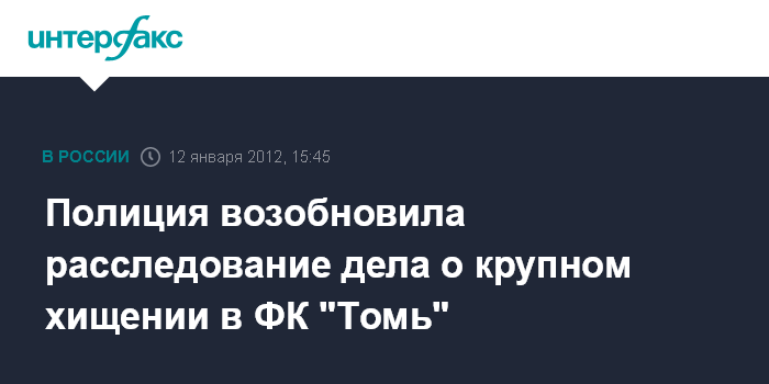 Полиция возобновила расследование дела о крупном хищении в ФК "Томь"