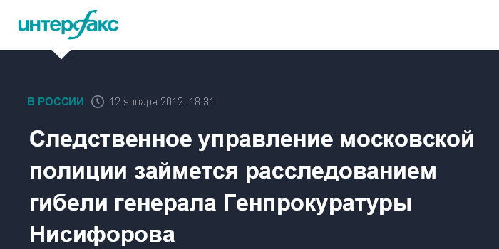 Следственное управление московской полиции займется расследованием гибели генерала Генпрокуратуры Нисифорова