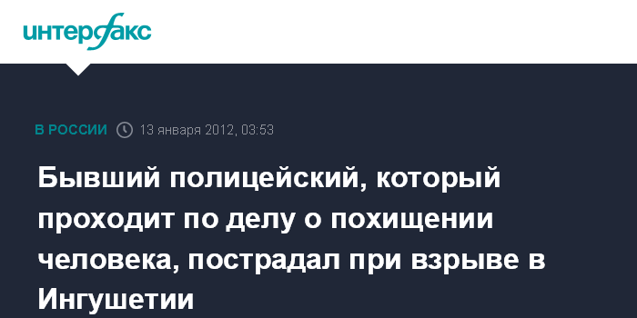 Бывший полицейский, который проходит по делу о похищении человека, пострадал при взрыве в Ингушетии