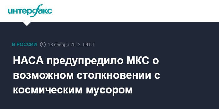 Лондон. 13 января. INTERFAX.RU - Американское космическое агентство НАСА попросило астронавтов на борту Международной космической станции (МКС) запустить в пятницу двигатели, чтобы избежать столкновения с фрагментом космического мусора, передает BBC.