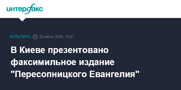 Москва. 20 июля. INTERFAX.RU - В Киеве презентовано факсимильное издание рукописного памятника средины 16 века "Пересопницкого Евангелия".