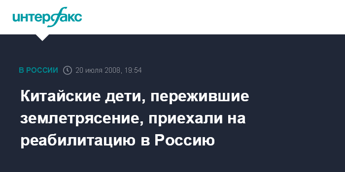 Москва. 20 июля. ИНТЕРФАКС - Большая группа детей прибыла на территорию Российской Федерации из китайской провинции Сычуань, пострадавшей в мае от разрушительного землетрясения.