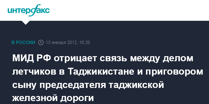 МИД РФ отрицает связь между делом летчиков в Таджикистане и приговором сыну председателя таджикской железной дороги