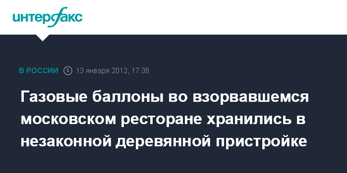 Газовые баллоны во взорвавшемся московском ресторане хранились в незаконной деревянной пристройке