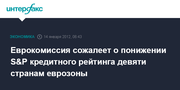 Еврокомиссия сожалеет о понижении S&P кредитного рейтинга девяти странам еврозоны