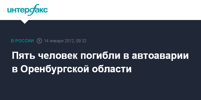Нижний Новгород. 14 января. ИНТЕРФАКС-ПОВОЛЖЬЕ - Пять человек погибли, трое пострадали в результате столкновения легковых автомобилей в Оренбургской области, сообщил агентству "Интерфакс-Поволжье" начальник пресс-службы Приволжского регионального центра МЧС России Олег Зугеев в субботу.