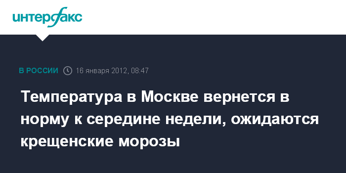 Температура в Москве вернется в норму к середине недели, ожидаются крещенские морозы