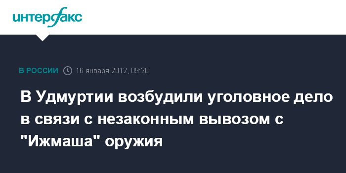 В Удмуртии возбудили уголовное дело в связи с незаконным вывозом с "Ижмаша" оружия