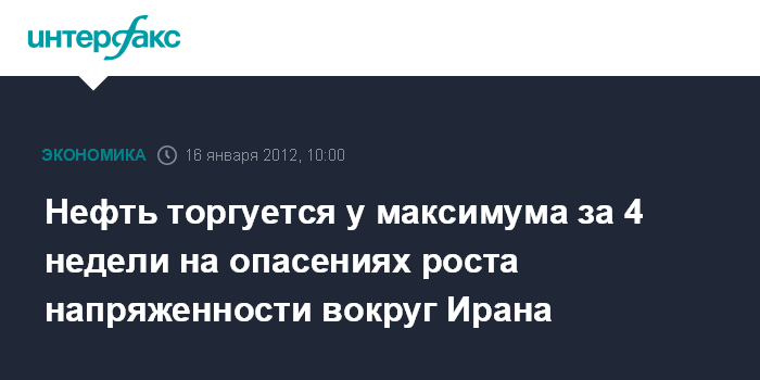 Нью-Йорк. 16 января. INTERFAX.RU - Цены на нефть слабо растут в ходе торгов в понедельник, оставаясь у максимума за 4 недели, в связи с сохранением опасений роста напряженности вокруг Ирана, однако снижение рейтингов ряда европейских стран сдерживает подъем цен, сообщает агентство Bloomberg.