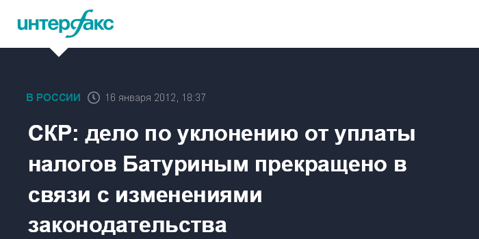 СКР: дело по уклонению от уплаты налогов Батуриным прекращено в связи с изменениями законодательства
