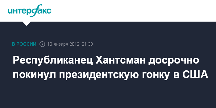 Республиканец Хантсман досрочно покинул президентскую гонку в США