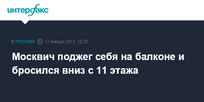 Москвич поджег себя на балконе и бросился вниз с 11 этажа