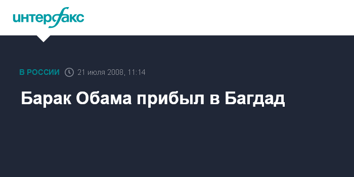 Вашингтон. 21 июля. INTERFAX.RU - Демократ Барак Обама, претендующий на пост президента США, сегодня прибыл в Багдад, сообщает американский телеканал CNN.