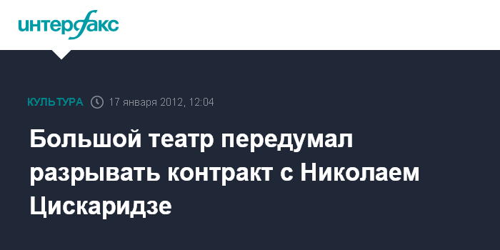 "Руководство Большого театра передумало разрывать контракт с Николаем", - сказал собеседник агентства.