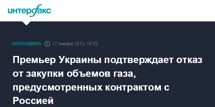 Хмельницкий. 17 января. INTERFAX.RU - Премьер-министр Украины Николай Азаров заявляет, что Украина не собирается закупать в России то количество газа, которое предусмотрено в действующих контрактах.