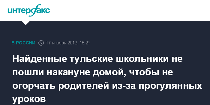 Тула. 17 января. INTERFAX.RU - Найденные тульскими полицейскими трое пропавших накануне школьников объяснили причину своего поступка нежеланием огорчать родителей из-за прогулянных в школе уроков.