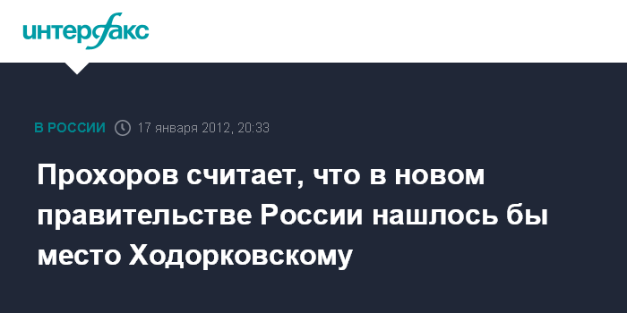 "Ходорковскому непременно (может найтись место в правительстве - ИФ). В том числе Ходорковский мог бы быть премьер-министром", - сказал Прохоров во вторник в эфире радиостанции "Эхо Москвы".