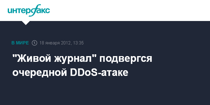 Москва. 18 января. INTERFAX.RU – Популярный блогохостинг "Живой журнал" в среду утром подвергся очередной DDoS атаке, сообщил глава русского "Живого журнала" Илья Дронов.