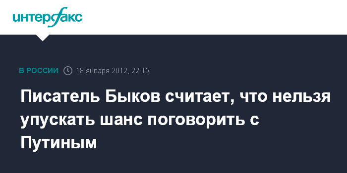 Ранее премьер-министр РФ Владимир Путин заявил, что готов к диалогу и с писателем Борисом Акуниным, и с публицистом Дмитрием Быковым.