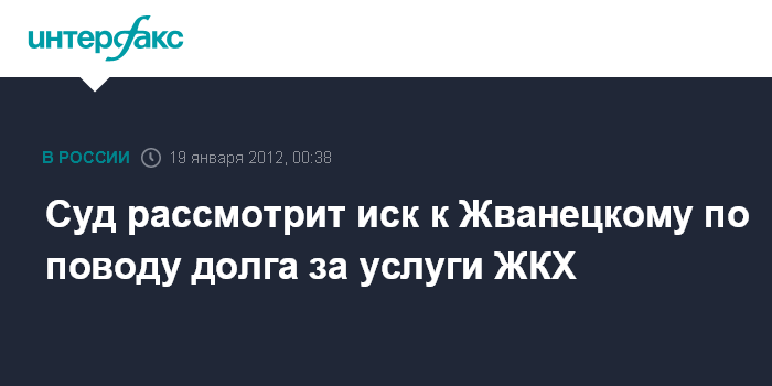 Москва. 19 января. INTERFAX.RU - Тверской суд Москвы в четверг рассмотрит иск компании "Санраш" к сатирику Михаилу Жванецкому с требованием взыскать с него почти 380 тыс. рублей за неуплату коммунальных платежей.