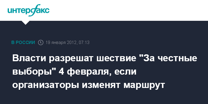 Власти разрешат шествие "За честные выборы" 4 февраля, если организаторы изменят маршрут