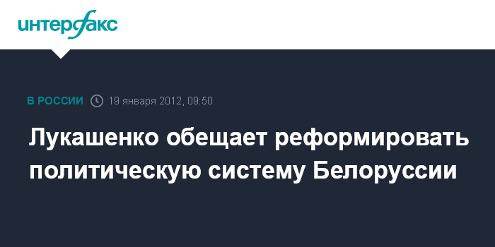 Минск. 19 января. INTERFAX.RU - Президент Белоруссии Александр Лукашенко считает возможным проведение политической реформы в стране после парламентских выборов, которые запланированы на осень 2012 года.
