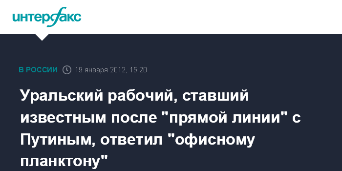 Уральский рабочий, ставший известным после "прямой линии" с Путиным, ответил "офисному планктону"