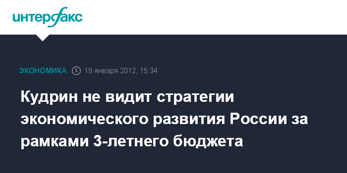 Москва. 19 января. INTERFAX.RU - У России на сегодняшний день нет утвержденной стратегии развития экономики на более чем трехлетний период, заявил экс-министр финансов России Алексей Кудрин.