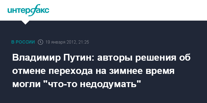 "Я не являюсь автором этого решения (об отмене перехода на "зимнее" время - ИФ), - с улыбкой заметил Владимир Путин. - Мне вставать всегда тяжело".