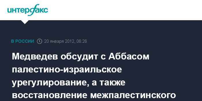 Медведев обсудит с Аббасом палестино-израильское урегулирование, а также восстановление межпалестинского согласия