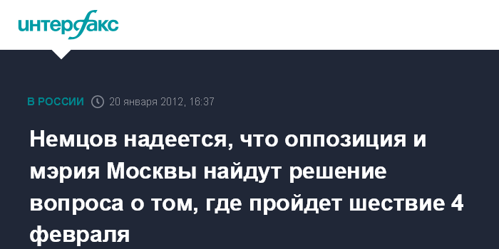 Немцов надеется, что оппозиция и мэрия Москвы найдут решение вопроса о том, где пройдет шествие 4 февраля
