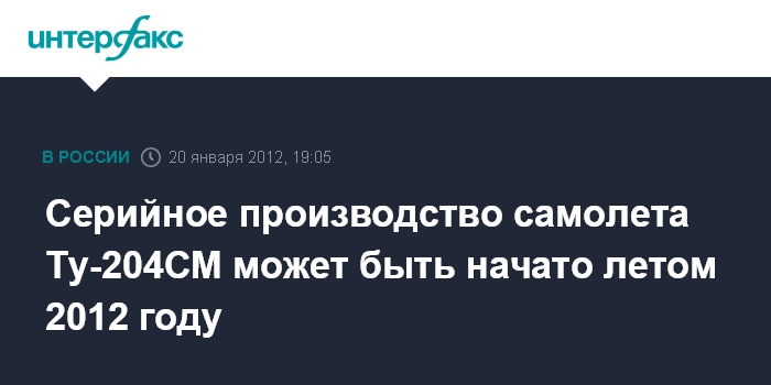 Серийное производство самолета Ту-204СМ может быть начато летом 2012 году