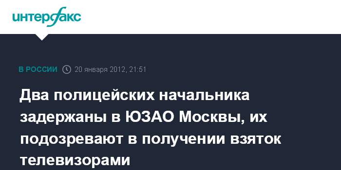 Два полицейских начальника задержаны в ЮЗАО Москвы, их подозревают в получении взяток телевизорами