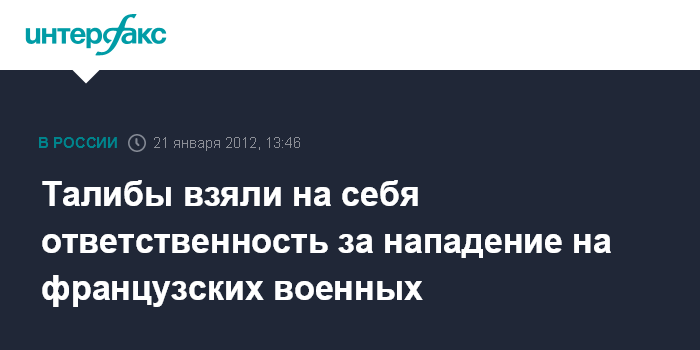 Кабул. 21 января. INTERFAX.RU - Мятежники из движения "Талибан" объявили в субботу, что берут на себя ответственность за нападение, которое привело к гибели четырех французских военнослужащих в афганской провинции Каписа.