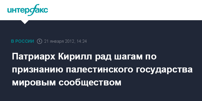Москва. 21 января. INTERFAX.RU - Патриарх Московский и всея Руси Кирилл поддержал процесс становления государственности Палестины.