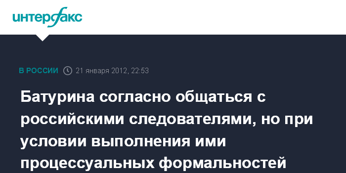 Батурина согласно общаться с российскими следователями, но при условии выполнения ими процессуальных формальностей