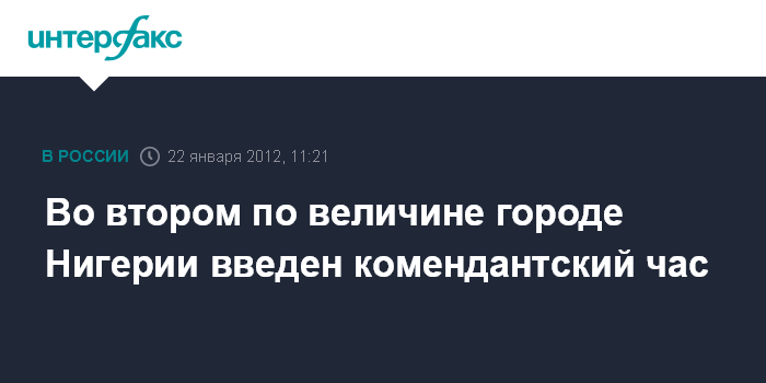 Вашингтон. 22 января. INTERFAX.RU - Комендантский час учрежден в городе Кано на севере Нигерии, после того, как в пятницу жертвами нападений там стали 156 человек, передает в воскресенье американский телеканал Си-Эн-Эн. Еще не менее 50 человек получили ранения. Поиски погибших и пострадавших продолжаются.