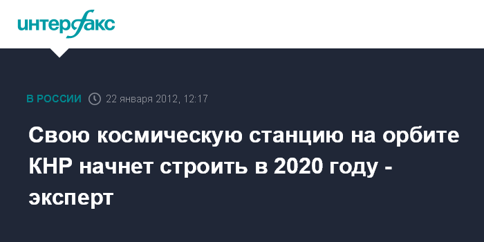 Москва. 22 января. INTERFAX.RU - Китай приступит к строительству собственной орбитальной станции с 2020 года, сообщил "Интерфаксу-АВН" научный сотрудник Центра анализа стратегий и технологий Василий Кашин.
