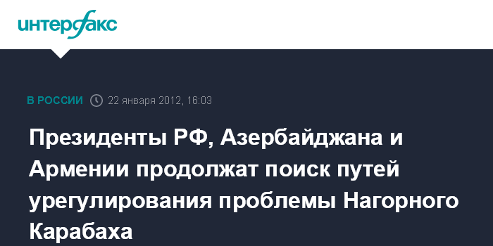 Президенты РФ, Азербайджана и Армении продолжат поиск путей урегулирования проблемы Нагорного Карабаха
